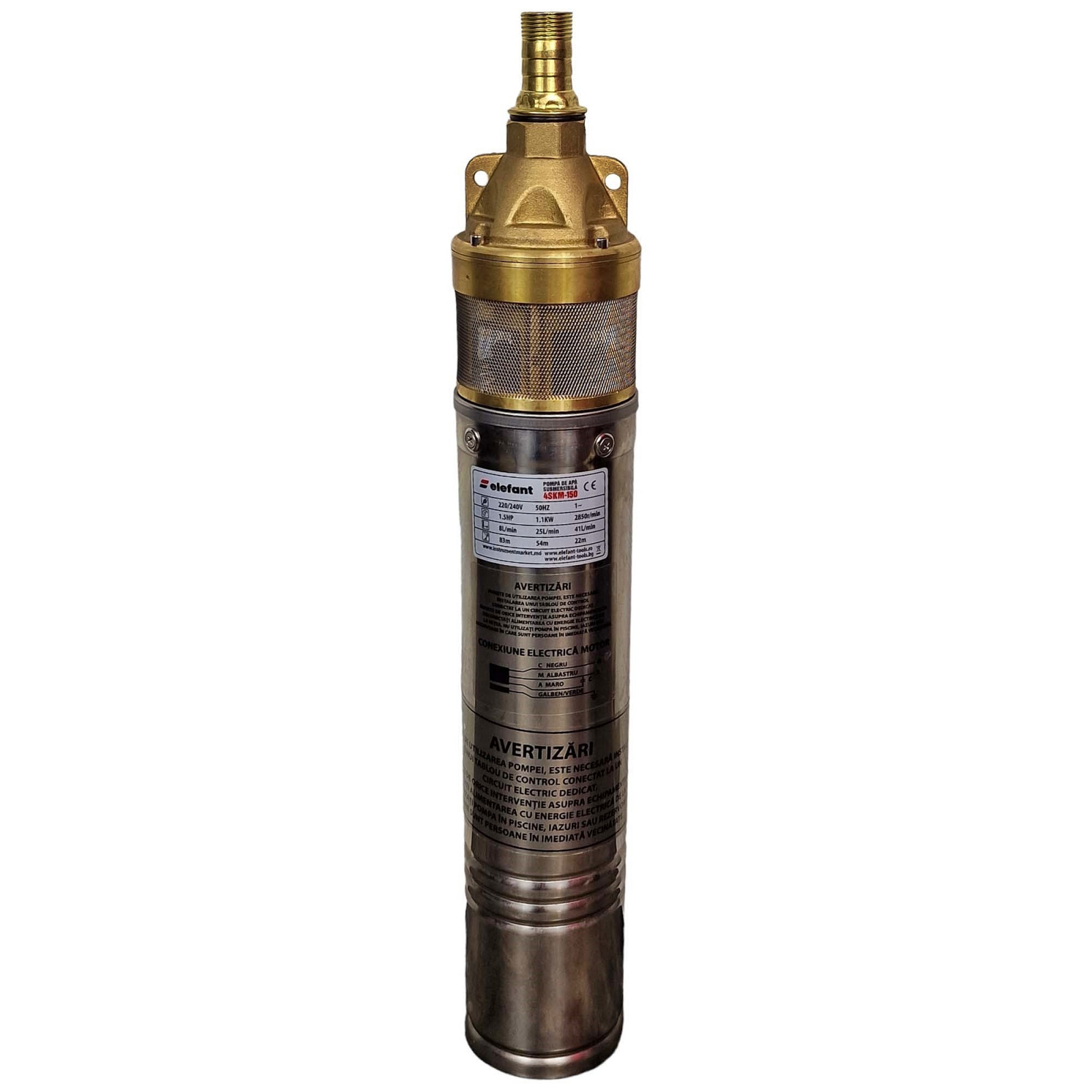 4SKM150 pompa submersibila ELEFANTPompa Elefant 4SKM150 este folosita pentru extragerea apei curate din fantani, puturi, rezervoare sau alte surse de apa curata. Este foarte utila in gospodarii, gradini pentru irigat/udat, dar si pomparea apei in instalatiile sanitare. Este un echipament electric usor de utilizat,sigilat ermetic,cu ajutorul careia apa va iesi la suprafata fara efort.CARACTERISTICI GENERALE/ SPECIFICATII TEHNICE Tip motor: Electric Brand: Elefant Material: Otel Utilizat pentru : Apa curata Mediu de utilizare: Interior/Exterior Tip curent: Monofazat Tip pompa: Submersibila Putere (watti): 1100 W Tensiune alimentare: 220V Latime: 94 mm Inaltime: 470 mm Greutate: 10 kg Lungime cablu: 15 m Culoare: Argintiu