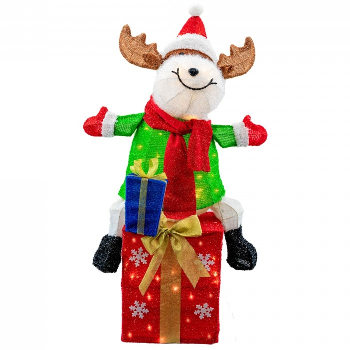 Ren pe cadru de sarma cu material textil si leduri, dimensiune 50x30x90cm, 50 led-uri lumina calda, cu jocuri de lumini, alimentare priza, MI-706