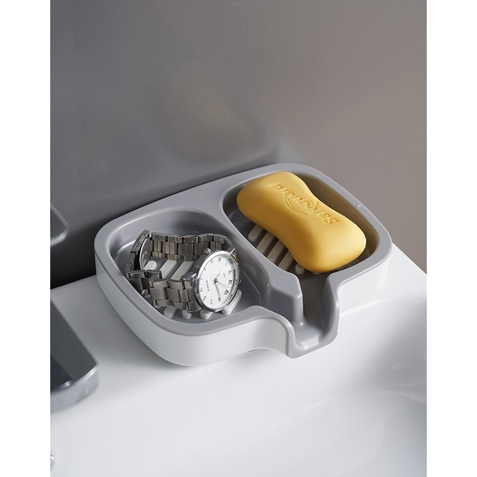 Savoniera Dubla, Flippy, Sistem de Scurgere a Apei, din ABS, 14.5 x 18 x 3 cm, Alb/Gri