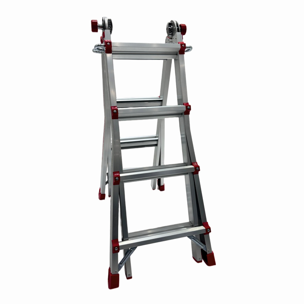 Scara multifunctionala din aluminiu cu balama MESTERINO TOOLS JL-404S-4X4, 3.9 metri, 4x4 trepte, greutate maxima 150 kg