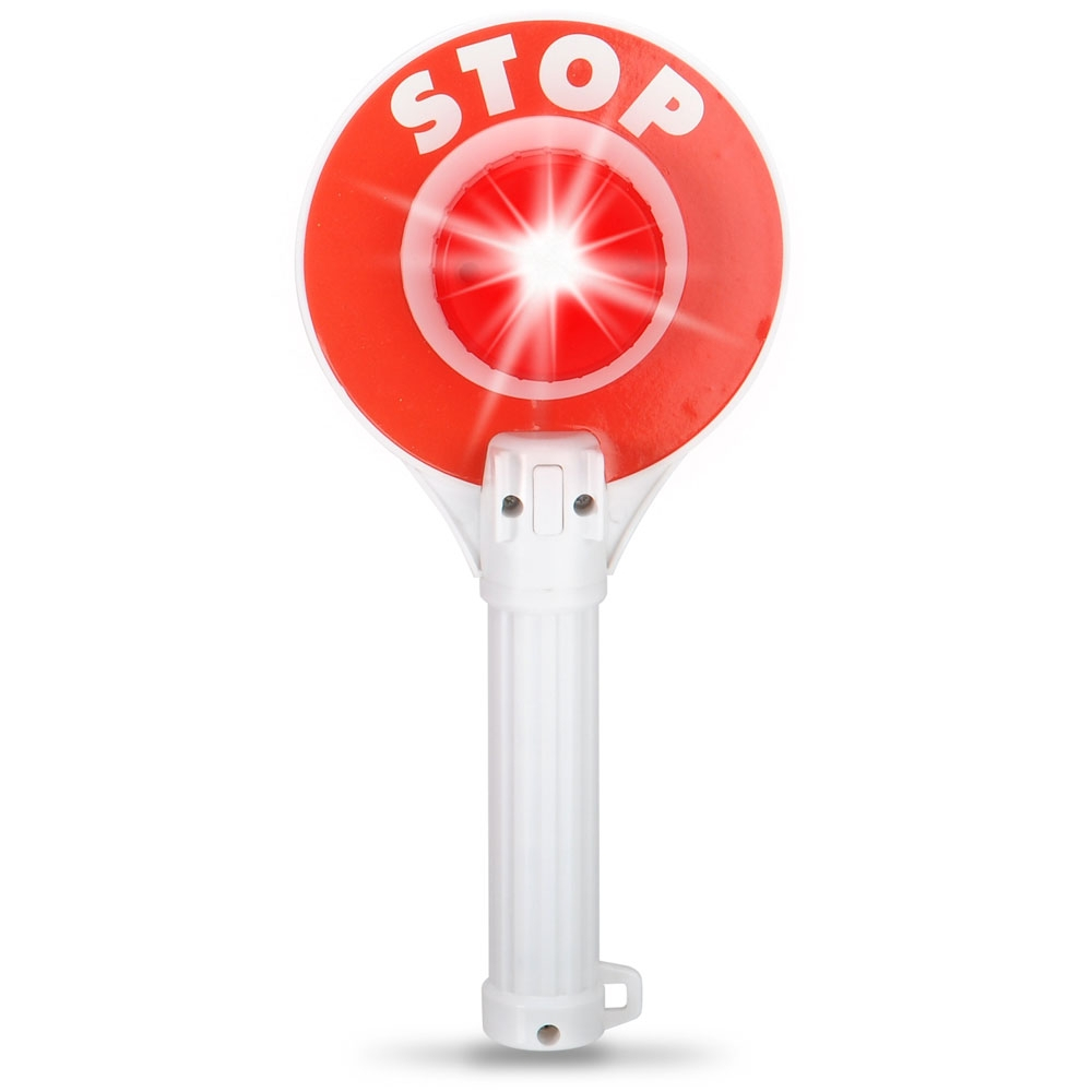 Lungimea stop-ului este de 24 cm si functioneaza cu ajutorul a doua baterii 1,5V R6, acestea fiind incluse in colet