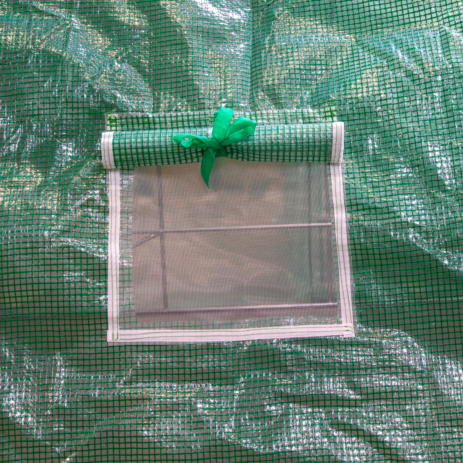 *Pachetul contine sistemul de prindere al serei, asemanator unui cort (sfoara si cuie metalice pentru fixare in pamant)