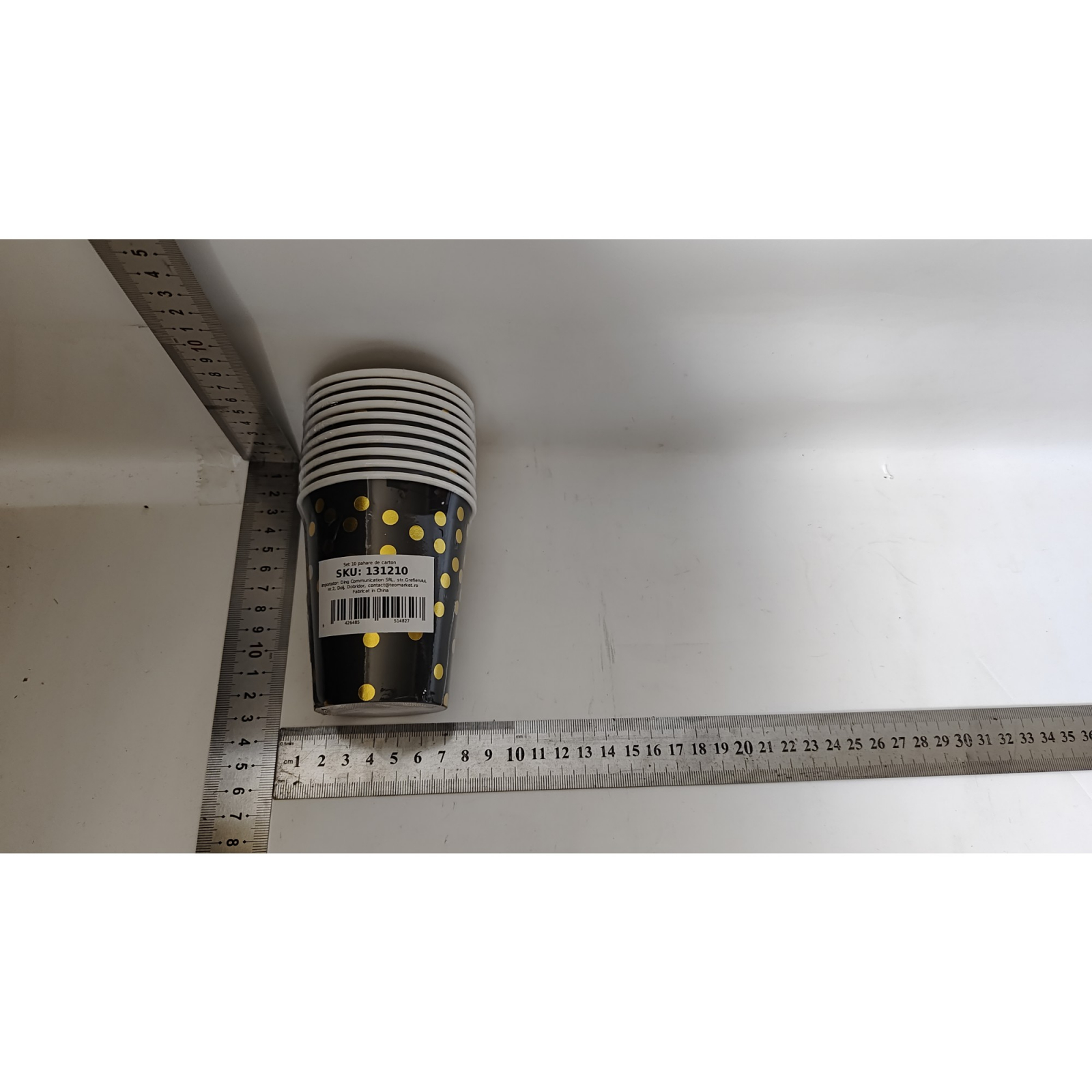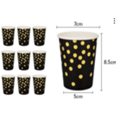 Set 10 pahare de carton, Flippy, Negre cu buline aurii