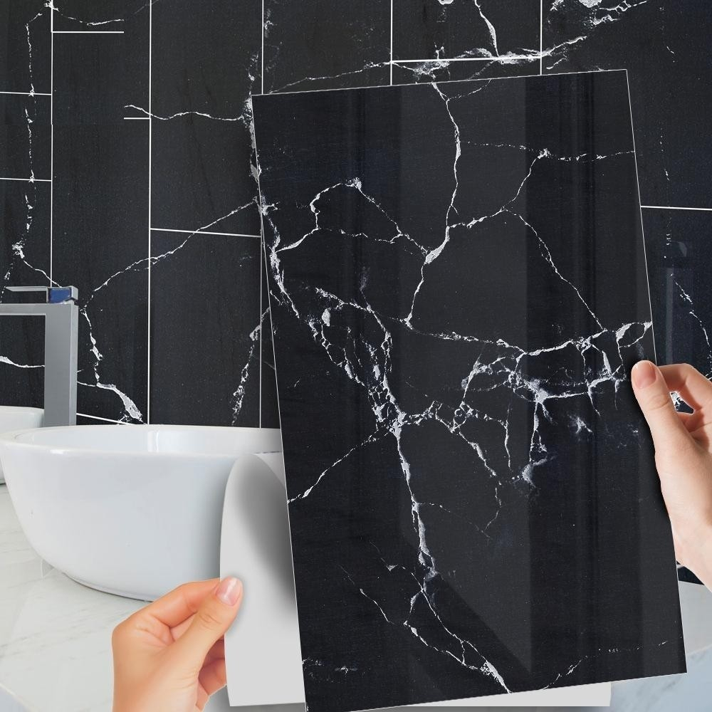 Acest set de 10 plăci autocolante din PVC cu imitație de marmură este o soluție rapidă și elegantă pentru decorarea pereților interiori. Cu un design autentic de marmură și un strat autoadeziv de calitate, plăcile sunt rezistente și durabile, oferind un aspect sofisticat în orice cameră.