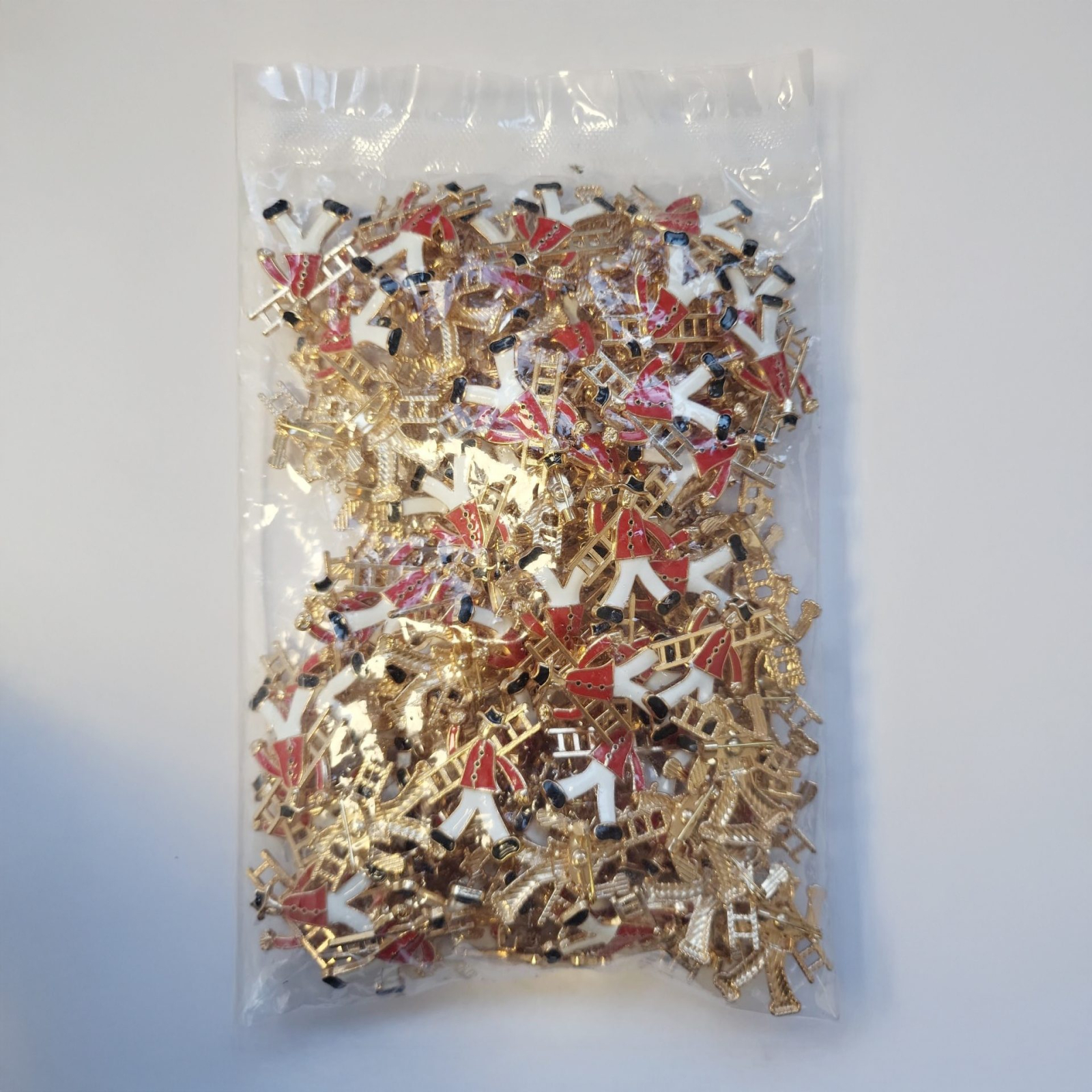 Descoperi versatilitatea și elegența acestui set generos de broșe metalice Flippy! Cu 100 de piese în fiecare pachet, ai la dispoziție o cantitate abundentă pentru proiecte creative, decorații, costume sau vânzări en-gros. Design-ul tradițional model cărăuș combină culori festive - auriu, alb și roșu - perfecte pentru orice temă festivă sau colecție de accesorii.