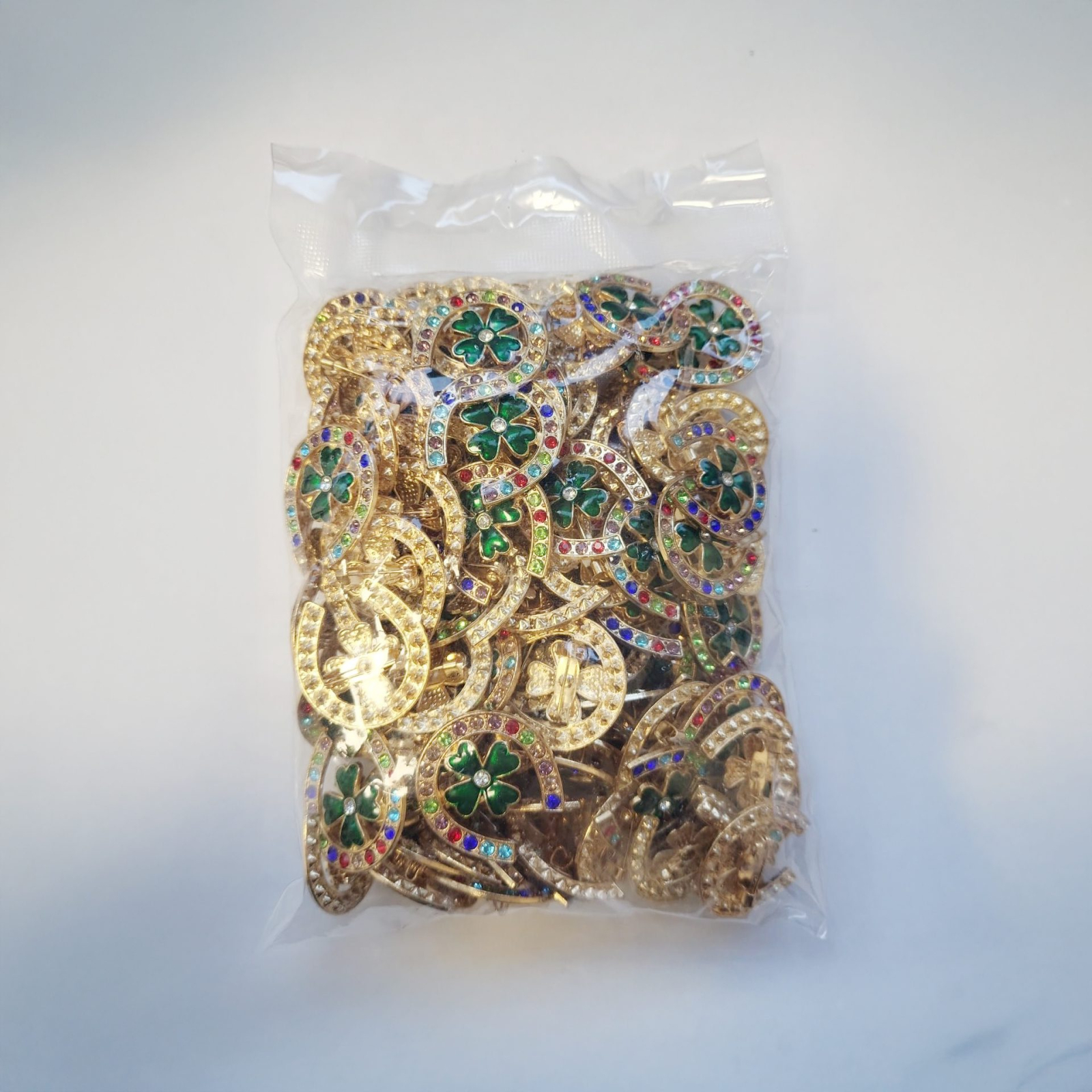 Descoperi colecția premium de broșe Flippy, un set complet de 100 de piese care combină tradițional cu sofisticație moderna. Fiecare brosa este o miniatura de arta, purtand modelul iconic potcoava cu trifoi, decorat cu pietre multicolore care captureaza lumina si atentioneaza privirile. Perfecte pentru colectionari, ateliere de creazie, magazine de accesorii sau pentru cei care vor sa ofere cadouri deosebite.