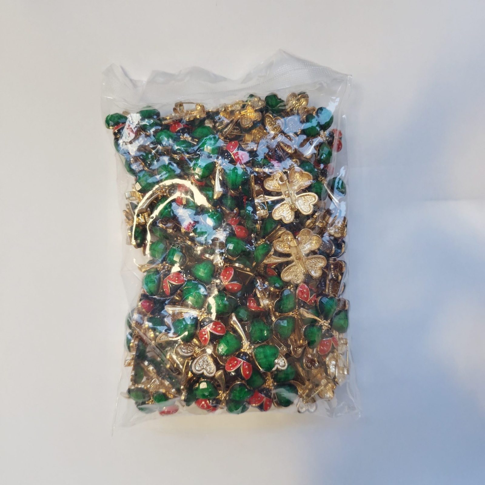 Descoperi o colecție întrească și fermecătoare de 100 broșe metalice cu detalii în piatră, ideală pentru proiecte de crafting, decorare sau colecționare. Fiecare broșă prezintă un design tradițional rafinat cu motiv de trifoi și buburuză, combinând eleganța clasică cu o notă de culoare vie.