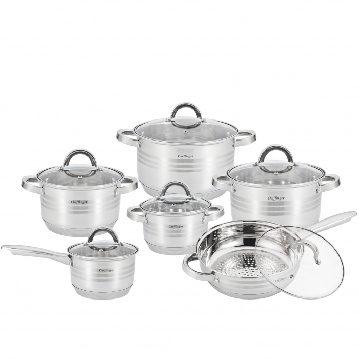 Set 12 piese, cratite cu capac CF-SS1230, inox, 16-16-18-20-24-24cm/2.1-2.1-2.9-3.9-3.4-6.5L