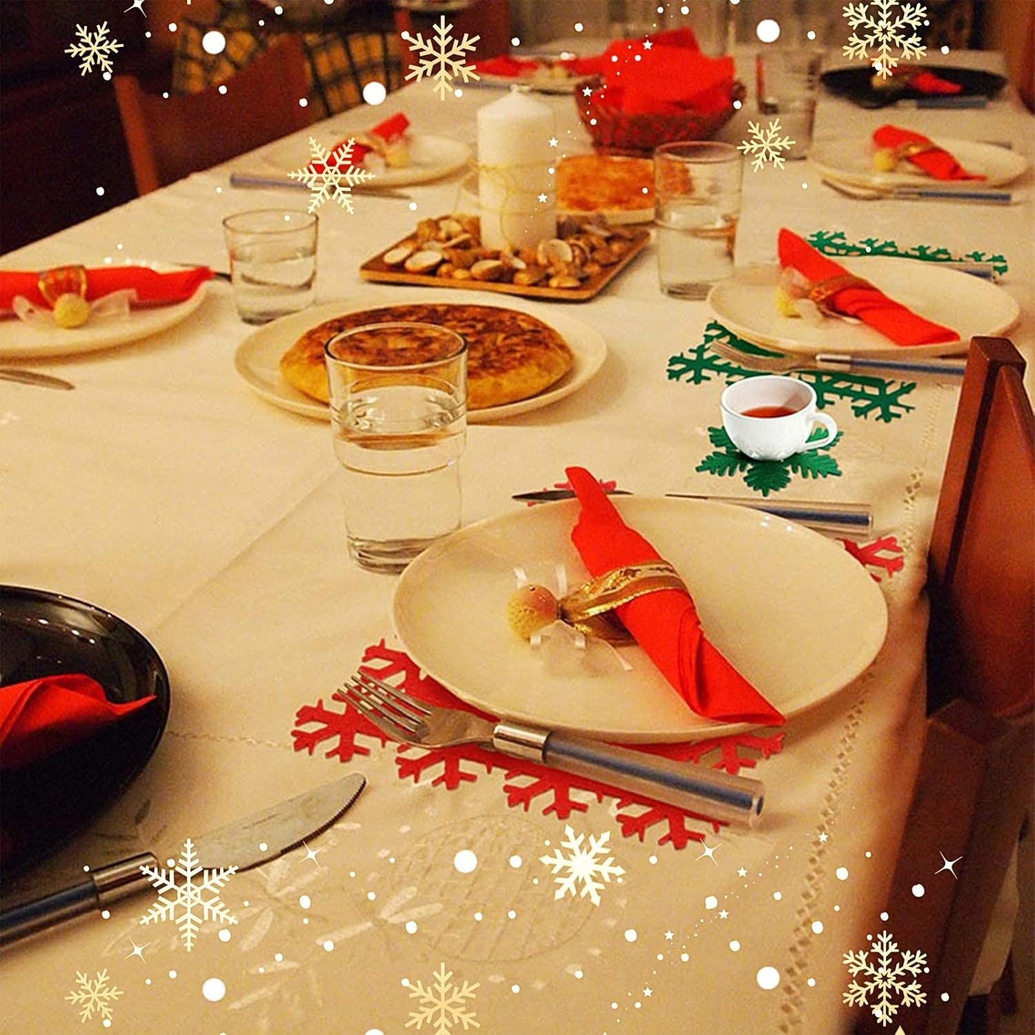 Descriere produs: Set 12 Servete pentru Masă și Suporturi de Pahare Tacâmuri Flippy