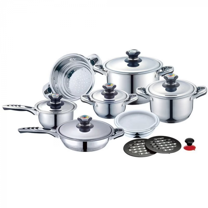 Set 16 piese PRO-1600, cratite de inox cu capac, 9 straturi, 16-16-20-20-24-24cm/1.6-1.6-2.9-3.1-3.4-6.3L