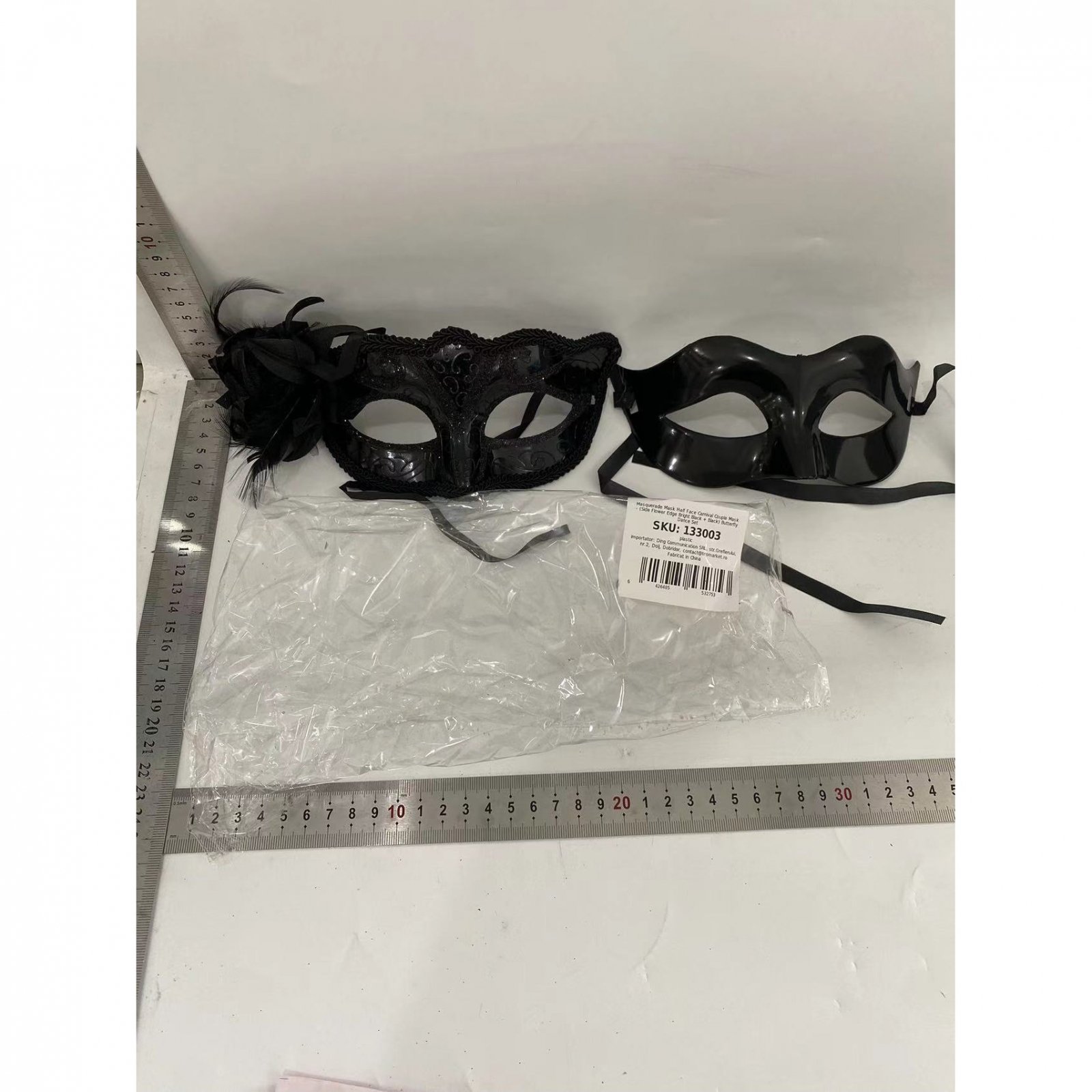 Lichidare Set 2 Masti de Cuplu, Flippy, pentru Carnaval, Bal Mascat, Marime Universala, Model Floare Laterala si Margele, Model Clasic Fluture, Negre