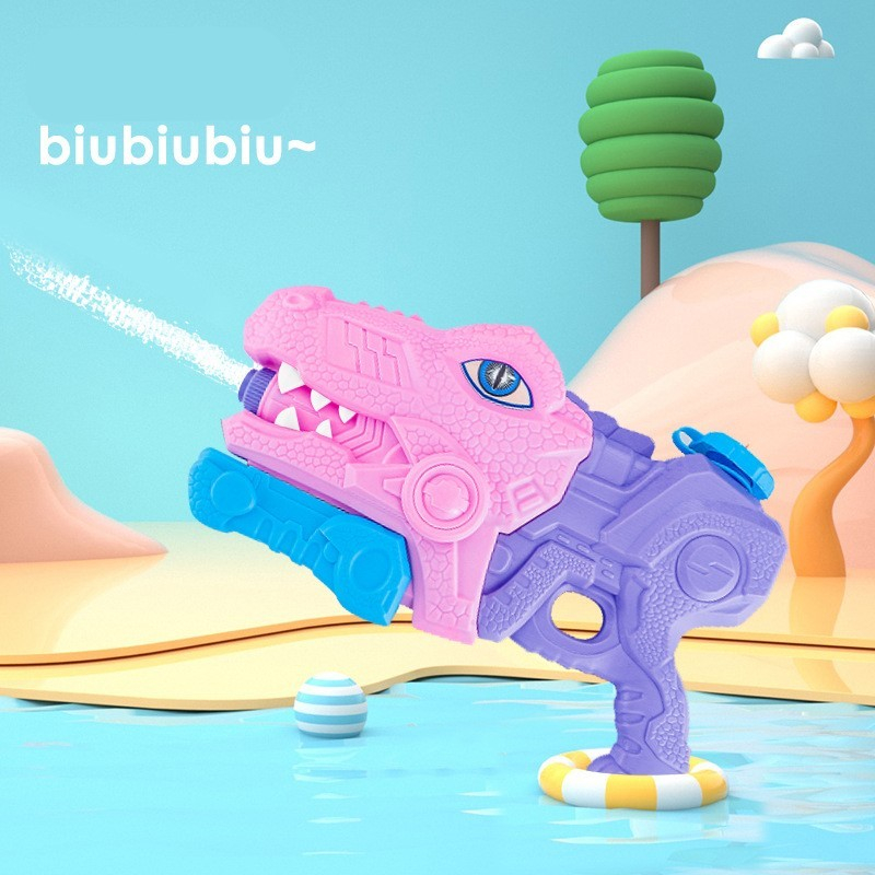 Set 2x Pistol cu Apa pentru Copii, Rezervor, Pentru Piscina/Plaja, Flippy, 6ani+, Tiranozaur, Roz + Verde,660 ML