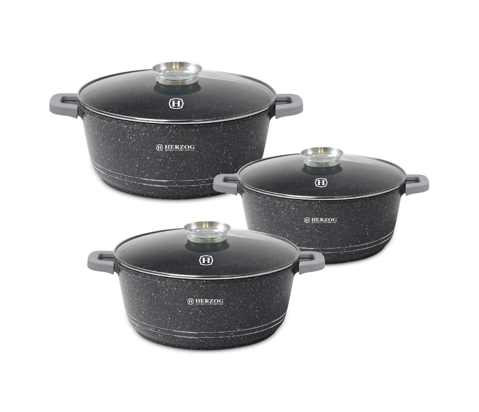 Set 3 cratite cu capac HR-5210, acoperire din marmura, 36-40-44cm/14-19.2-25L