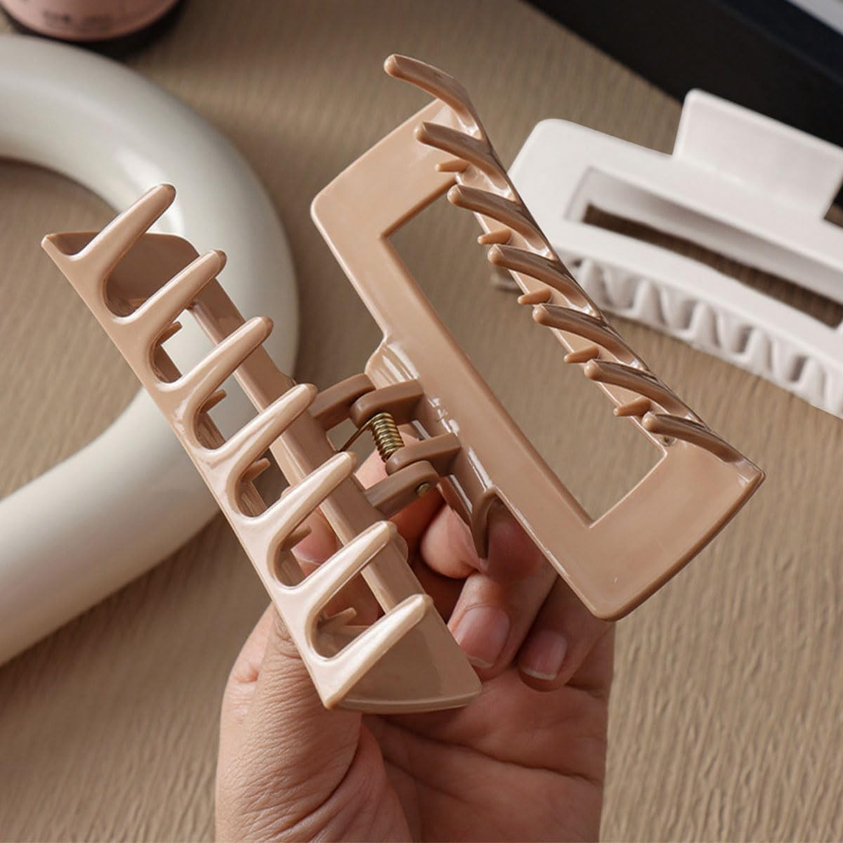 Datorită dimensiunii mari, sunt perfecte pentru prinderea părului la ceafă, cocuri, păr gros, lung sau ondulat. Designul ergonomic le face confortabile pentru purtare zilnică, acasă, la birou sau în timpul activităților relaxante.
