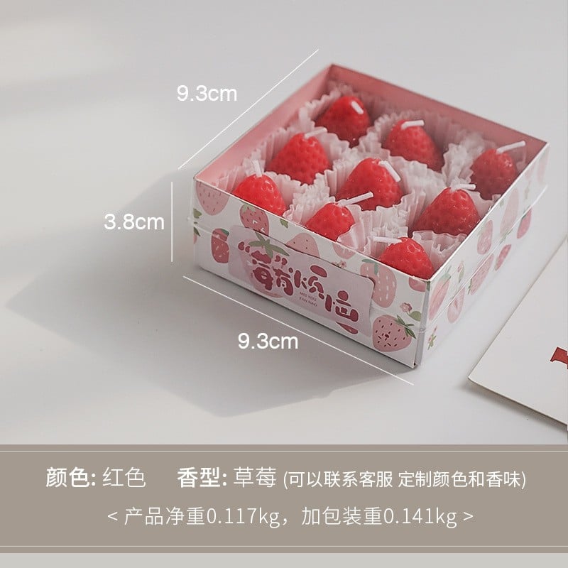 Lichidare Set 9 Lumanari Parfumate, Flippy, Ceara de Soia, Model Capsunici, Rosu, Aroma de Capsuni, 9.3x3.8x9.3 cm
