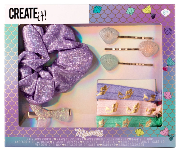 Transforma-te într-o sirena cu acest set de accesorii pentru par Create It! Cu culori stralucitoare si accente marine, acest set este perfect pentru micii entuziasti ai modei. Include o varietate de accesorii de par tematice pentru a-ti completa look-ul de sirena.