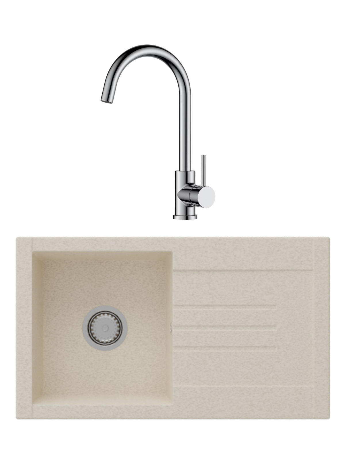 SET Chiuveta SanDonna ARONA + Baterie SanDonna Solo crom Chiuveta SanDonna Arona este realizata din material quartz compozit. Are o forma dreptunghiulara, cu o singura cuva adanca de 180 mm, cu dimensiunea de 760 X 440 mm. Quartz-ul este unul din materialele cel mai des recomandate din punct de vedere al igienei, suprafata sa impiedicand patrunderea si inmultirea bacteriilor si microorganismelor. Se recomanda montarea incastrata pe blatul de bucatarie. Racordurile flexibile asigura o instalare simpla si rapida. Chiuvetele au pregatite gaurile pentru montaj si nu veti avea nevoie de o carota diamantata pentru a da gaura pentru montarea bateriei. Accesorii incluse: sifon pop up cu preaplin Bateria Sandonna Solo Material și Finisaj: Construită cu aspect de granit din alama de înaltă calitate, anti-rugină Performanță ridicată: Proiectată pentru presiune mare, oferă un flux constant și puternic, ideal pentru utilizarea zilnică. Dimensiuni: Cu o înălțime de 35 cm, bateria este potrivită pentru spațiile de bucatarie care necesită un design compact și funcțional. Intretinere Quart: -nu se folosesc bureti de sarma pentru curatare. -atentie la obiectele ascutite/grele, acestea pot ciobi materialul. -nu se foloseste chiuveta pe post de tocator -folosirea buretilor non-abrazivi, detergent de vase si apa fierbinte; -in cazul depunerilor de calcar, se recomanda folosirea unui amestec din otet si lamaie; -dupa spalare chiuveta se usuca cu o laveta pentru a preveni depunerile de calcar; -lichidele precum cafeaua, ceaiul, se indeparteaza cu apa calda cat mai repede posibil pentru a evita o pata problematica -de evitat solutiile abrazive; pot fi inlocuite cu solutii cu granulatie foarte fina; -o data pe saptamana se recomanda folosirea unui ulei, precum uleiul de cocos sau ulei de gatit obisnuit, pe toata suprafata chiuvetei, dupa curatare si uscare, pentru a face suprafata non-poroasa -nu folositi solutii acide, tablete cu detergent pentru masina de spalat vase, solutii pentru curatarea scurgerii sau a calcarului, sau solutii pentru curatat toaleta; acestea pot duce la distrugerea permanenta a materialului -nu lasati in chiueveta pe o perioada indelungata vase din plastic/metal; acestea pot pata materialul.
