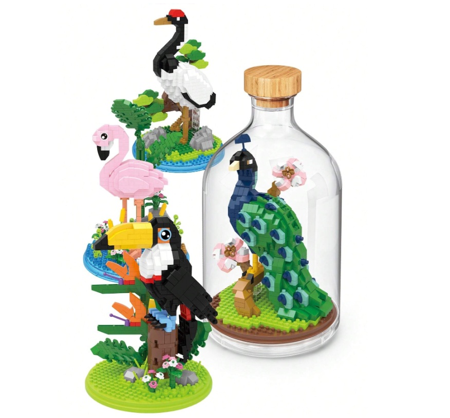 Set de Construit în Sticlă, Flippy®, 651 Piese, Model Paun, +14 Ani, Multicolor