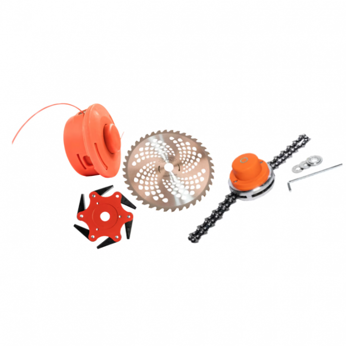 Set de consumabile universale pentru motocoasa, disc vidia, tambur de lant, disc cu 6 cutite, tambur cu fir