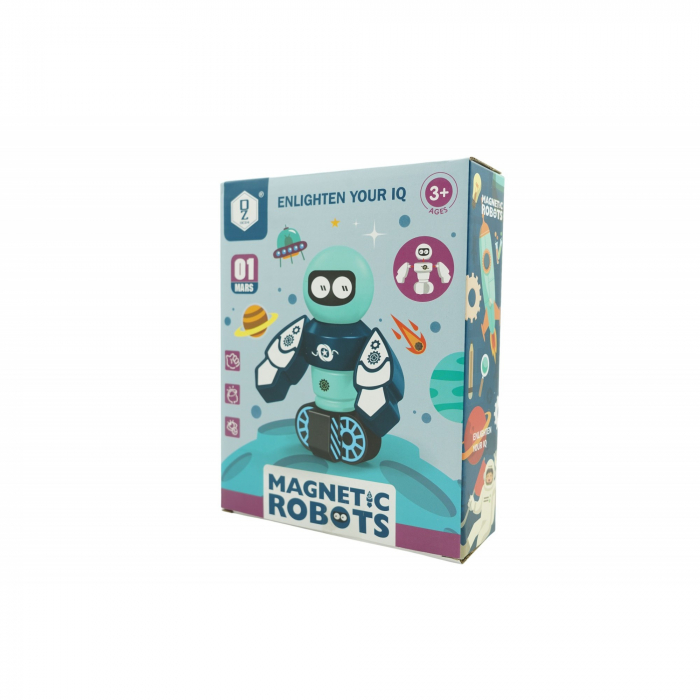 Lichidare Set inteligent de blocuri magnetice pentru copii, 7 piese, cutie depozitare, robotel, albastru