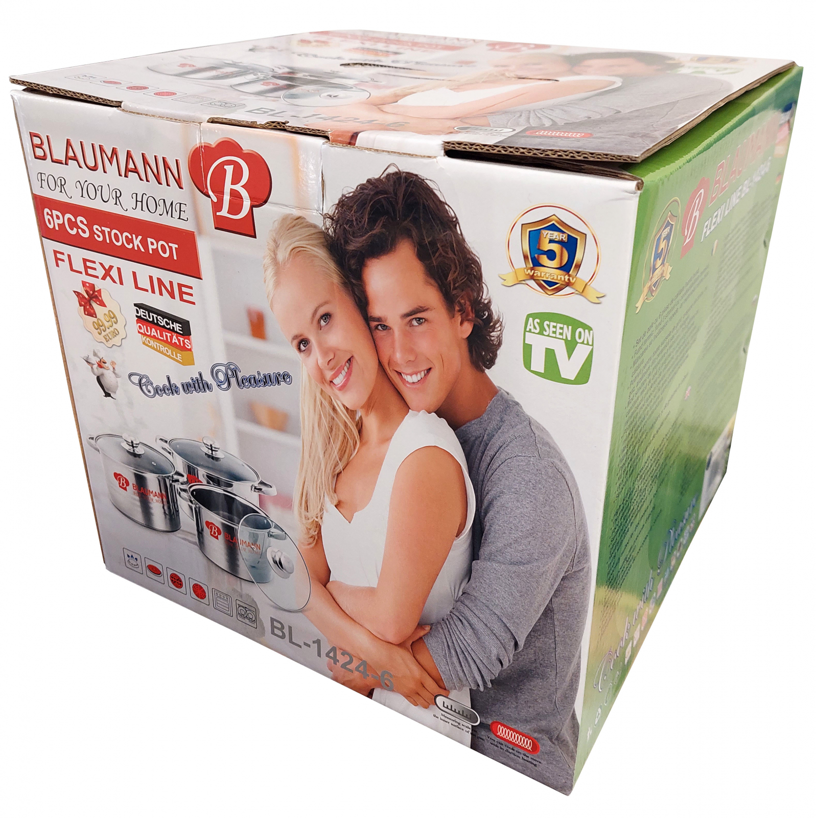 Set 3 oale din inox cu 3 capace din sticla termorezistenta cu maner confortabil din inox pentru o manevrare usoara , avand baza termica formata din 3 straturi, ceea ce face ca mancarea sa se incalzeasca mult mai repede iar caldura va fi pastrata timp indelungat. Poate fi folosita pe orice tip de aragaz sau plita si poate fi curatata manual sau in masina de spalat vase DIMENSIUNI: *18X11.5 cm/3.0L *20X12.5cm/ 4.1L *24x14.5cm/6.7L Material: Inox , sticla termorezistenta Numar bucati per set : 3 oale cu 3 capace Sursa de caldura: Gaz, Electric, Halogen Colectia : BLAUMANN FOR YOUR HOME * Imaginile, culorile si caracteristicile descrise au caracter informativ și pot contine mici inadvertente sau diferi ocazional fața de produsele prezentate pe site. * Produsele comandate sunt analizate inainte de a fi trimise (cod, design, culori, dimensiuni) pentru a fi siguri ca veti primi exact produsele din comanda.