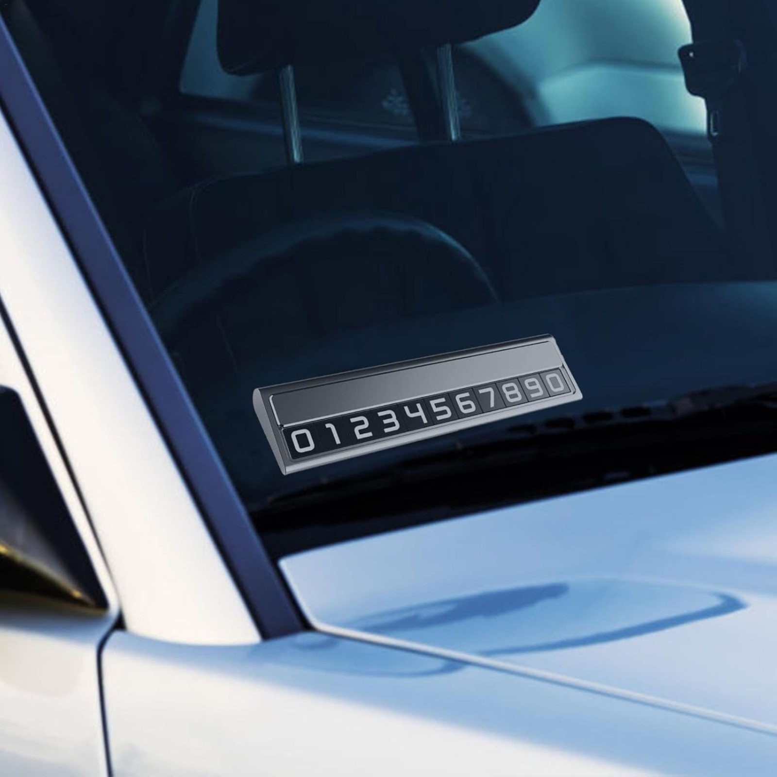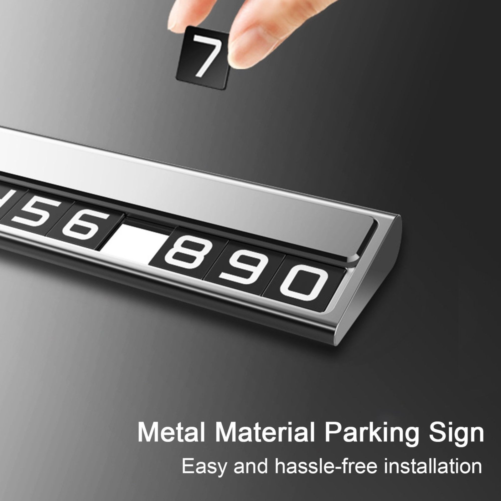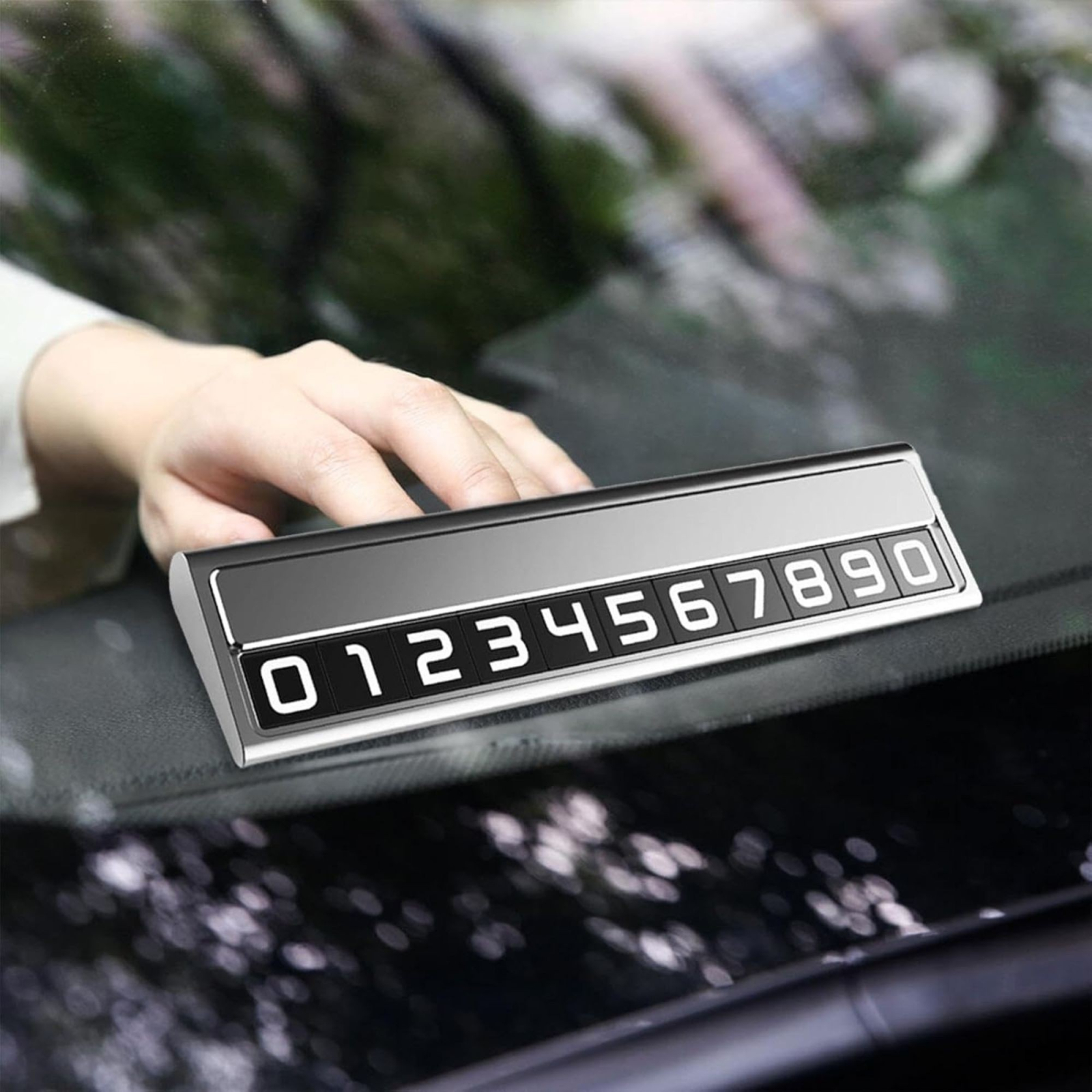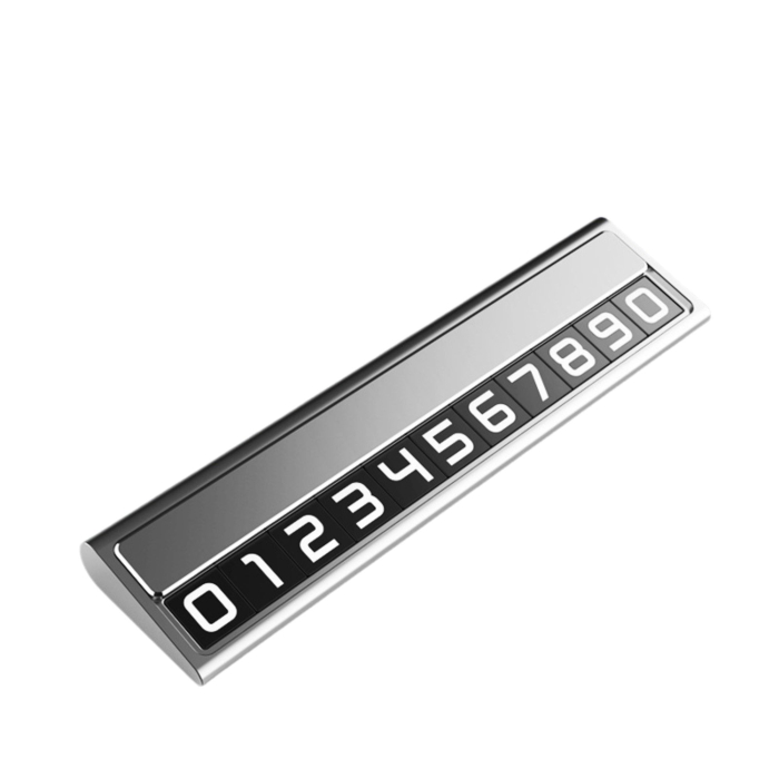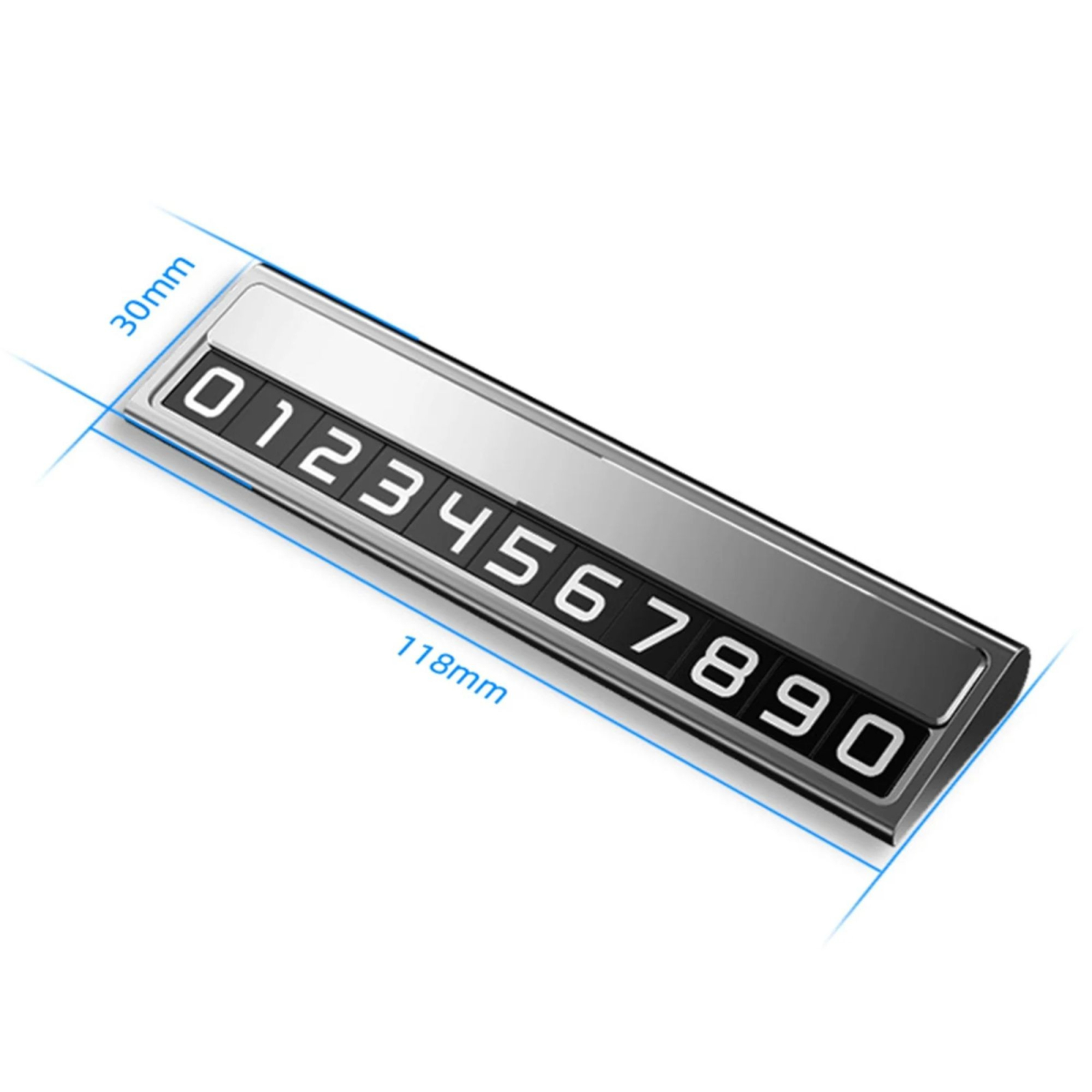Suport Auto Numar Telefon Parcare, Flippy, Design Metalic cu Capac, Afisaj Ascuns Rabatabil, Cifre Magnetice Fluorescente, 11.8 x 3 x 1 cm, Argintiu