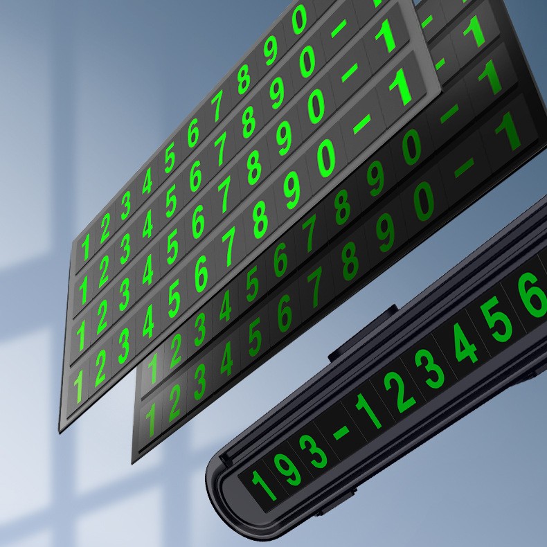 Suport Numar de Telefon pentru Parcare Auto, Flippy, Suport pentru Numarul de telefon, Banda glisanta pentru Ascundere, Banda Adeziva Inclusa, 120 x 48 x 24 mm, Cifre Verzi, Negru Mat