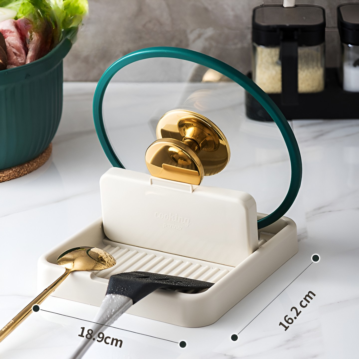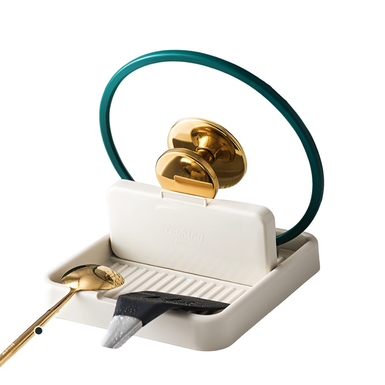 Raft de depozitare pentru bucătărie: - Ai astfel de probleme? Spatula în timpul gătirii, capacul și lingura când gătiți supa sunt pătate cu ulei sau supă, iar așezarea lor direct pe blat este neigienică și va păta blatul. Această tavă de depozitare poate rezolva perfect această problemă.