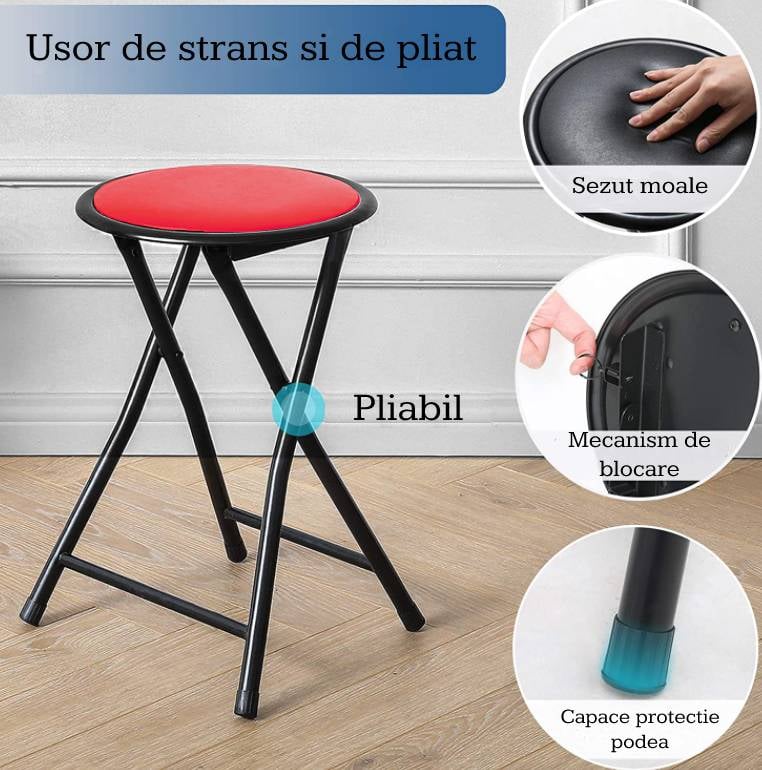 Taburetul pliant Malaga este recomandat pentru spațiile nu foarte generoase, cum ar fi bucătăria sau terasa. Cu Taburetul Pliant Malaga puteți gestiona foarte ușor spațiul din căminul dumneavoastră. Fiind pliant, puteți depozita acest taburet, generând astfel spațiu liber în funcție de necesități. Acest taburet pliant are un design simplu, este foarte ușor de strâns și extins. Rezistența acestui taburet este asigurată de cadrul metalic, realizat din tub metalic. Șezutul scaunului este din PVC, rezistă la uzură și ușor de întreținut.