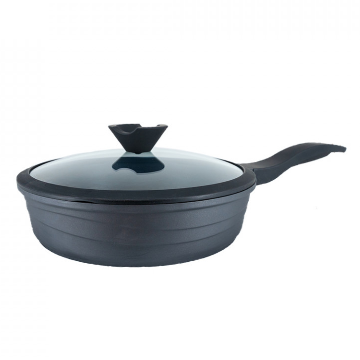 Tigaie din aluminiu turnat cu teflon , capac din sticla termorezistenta cu protectie de silicon, Diametru: 26 cm Capacitate : 2.1 L