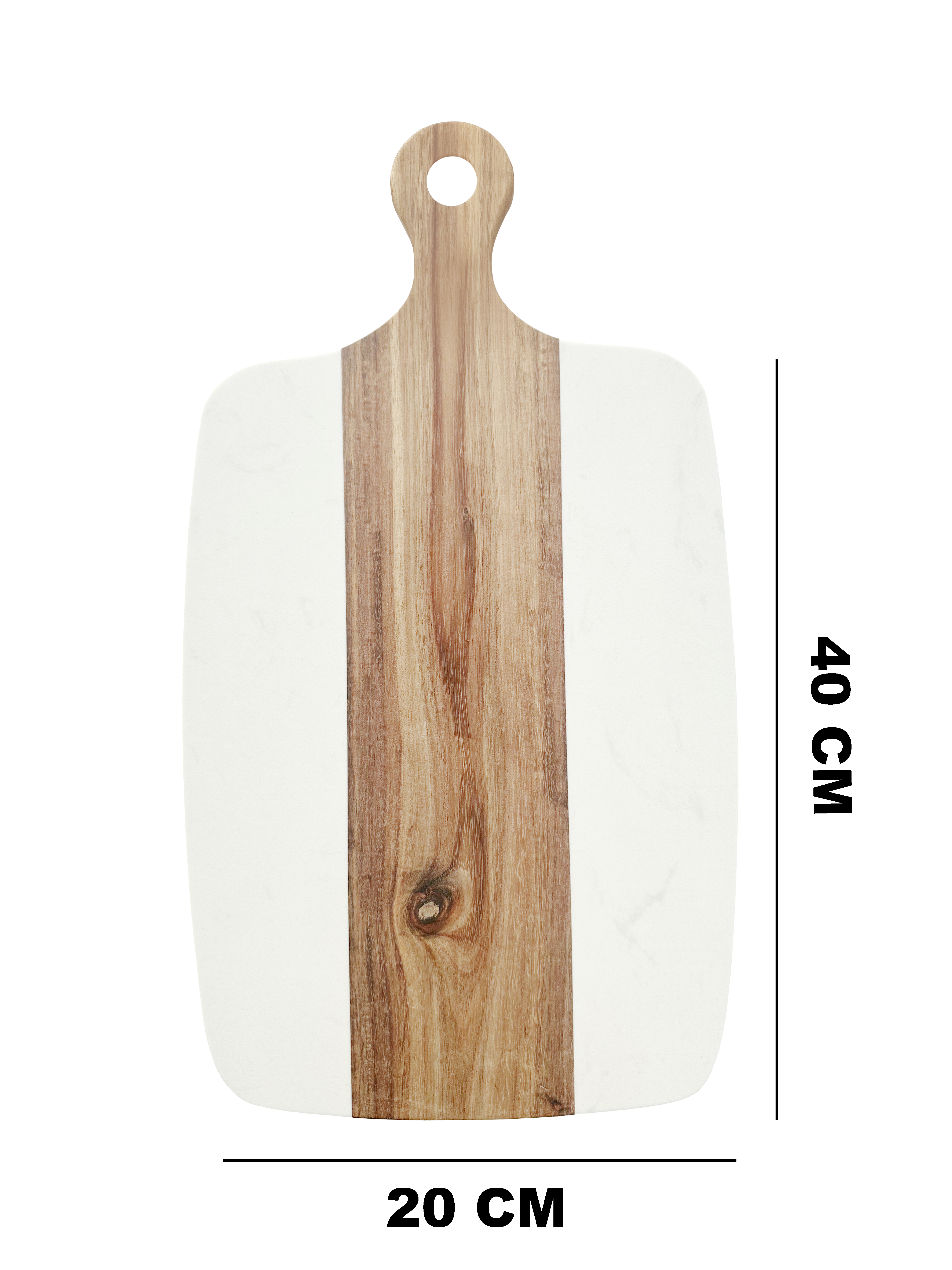 Tocator de bucatarie din marmura si lemn SanDonna Utilizare multifuncționalăPerfect pentru diverse alimente, de la fripturi și brânzeturi până la fructe, acest tocător poate fi folosit atât pentru tăierea alimentelor, cât și pentru expunerea acestora într-un mod elegant. Materiale durabileFabricat din marmură și lemn rezistent, este conceput să facă față utilizării frecvente și să asigure durabilitate pe termen lung. Curățare ușoarăSuprafața netedă din marmură permite o curățare rapidă și simplă, menținând igiena, iar cadrul din lemn oferă o prindere fermă și sigură. Dimensiuni generoaseSpațiul amplu oferit de acest tocător facilitează tăierea, felierea și pregătirea confortabilă a alimentelor.