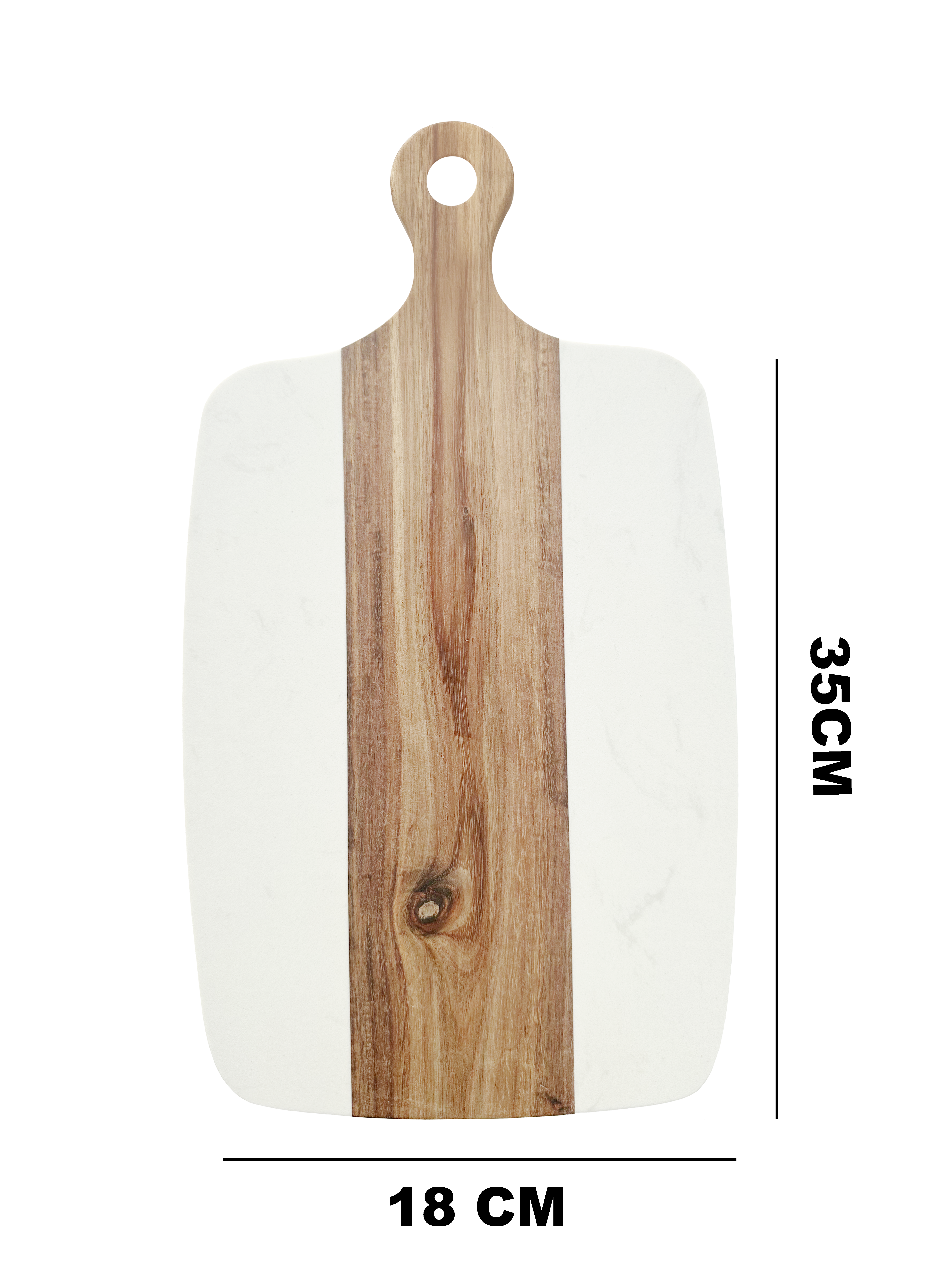 Tocator de bucatarie din marmura si lemn SanDonna Utilizare multifuncționalăPerfect pentru diverse alimente, de la fripturi și brânzeturi până la fructe, acest tocător poate fi folosit atât pentru tăierea alimentelor, cât și pentru expunerea acestora într-un mod elegant. Materiale durabileFabricat din marmură și lemn rezistent, este conceput să facă față utilizării frecvente și să asigure durabilitate pe termen lung. Curățare ușoarăSuprafața netedă din marmură permite o curățare rapidă și simplă, menținând igiena, iar cadrul din lemn oferă o prindere fermă și sigură. Dimensiuni generoaseSpațiul amplu oferit de acest tocător facilitează tăierea, felierea și pregătirea confortabilă a alimentelor.
