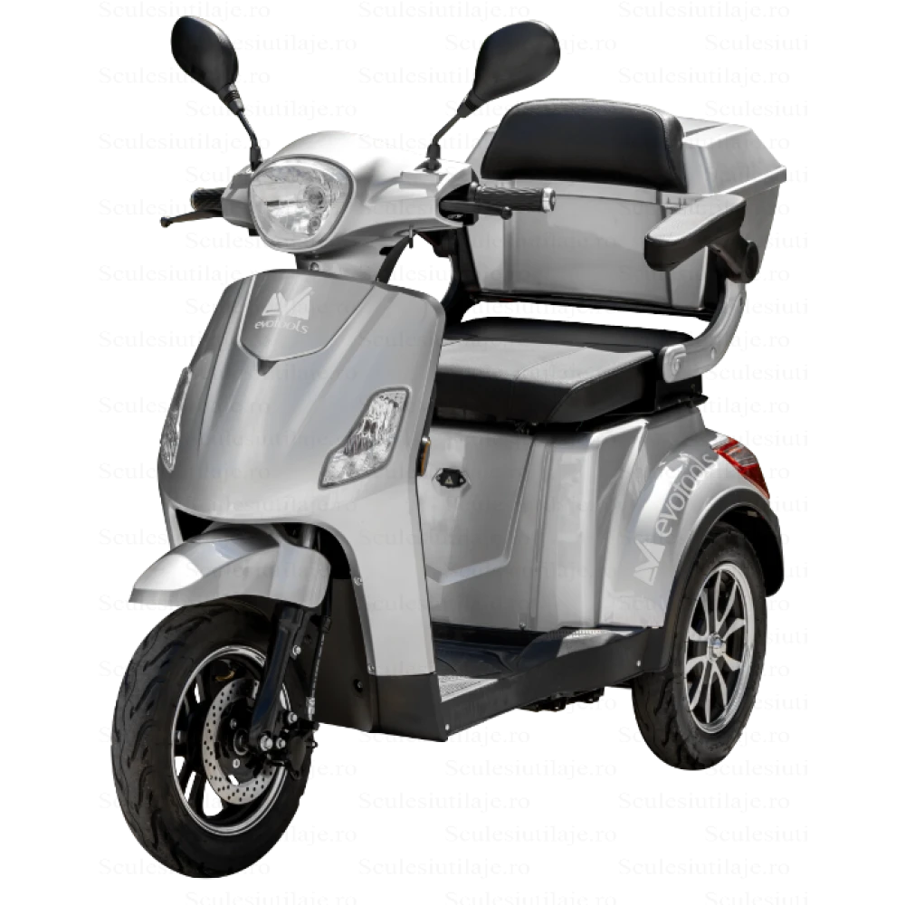 Triciclul electric pentru persoane TRP800-1 EvoTools vine echipat cu un motor brushless cu o putere de 800 W si poate atinge o viteza maxima de 25km/h.