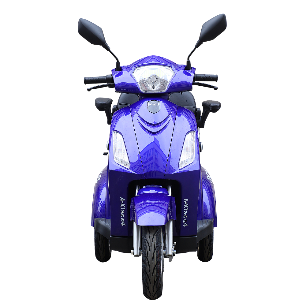 Triciclu electric RDB A-Klass4 este propulsat de către cele 5 baterii de 12V-20Ah având un motor electric cu diferențial de 800W, autonomia fiind de maxim 40-50 km in conditii optime. Este echipată cu două chei , spațiu de depozitare. Viteza maximă este de 25km/h si 3 viteze acționate printr-un buton. Are comandă de mers înapoi cu avertizare sonoră, becuri LED, roți spate ANTI-RĂSTURNARE. 3 roți cu jenți de magnezium, frână disc pe față si tambur pe spate. Acestă tricicletă electrică nu necesită permis de conducere!