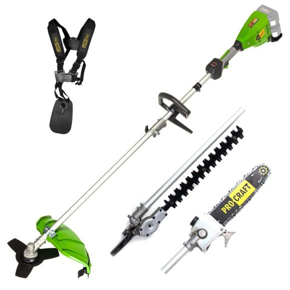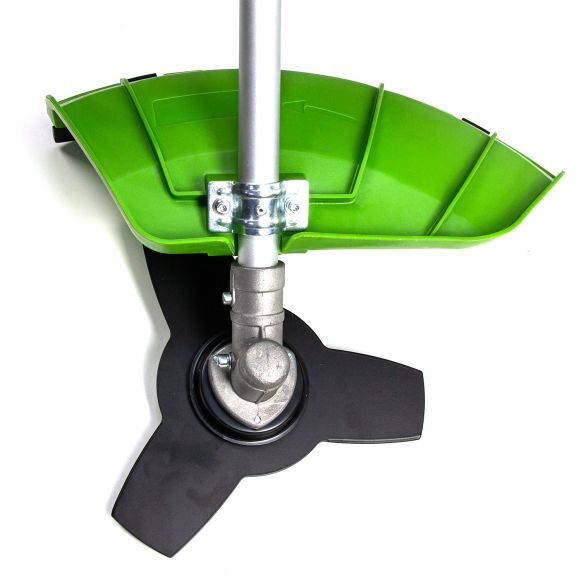 Motocositoare cu 2 acumulatori de 20 V si 4 Ah fiecare cu pachet ce include trei tipuri de adaptoare; pentru cosit iarba, pentru taiat ramuri si pentru tuns gardul viu. Scula foloseste un motor brushless ce genereaza o viteza de rotatie in gol de 7000 rpm cu pornire lenta.