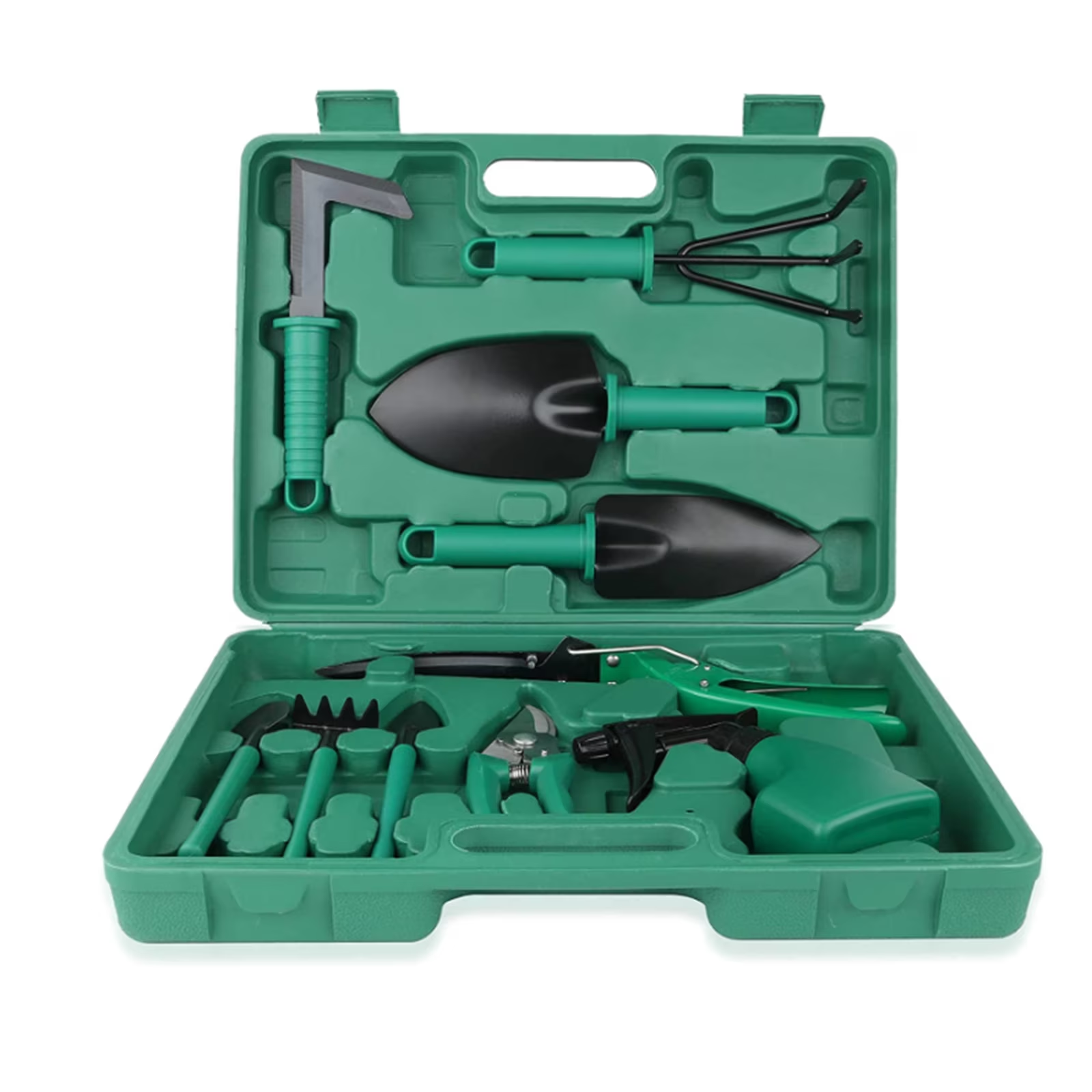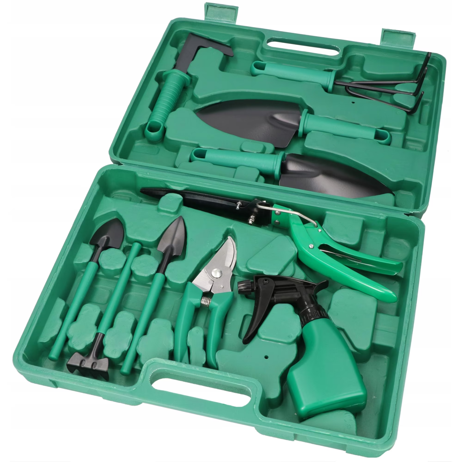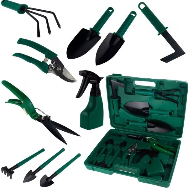 Trusa de gradinarit de 10 elemente este o solutie ideala pentru persoanele care cauta solutii functionale in gradina. Carcasa de transport la indemana contine toate uneltele, de care ai nevoie in gradina, mereu la indemana.