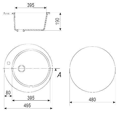 Chiuveta rotunda de bucatarie Ulgran U-405-308 Negru, 49.5 cm
