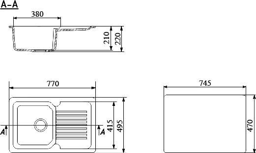 Chiuvetă dreptunghiulara fara gaura pentru baterie