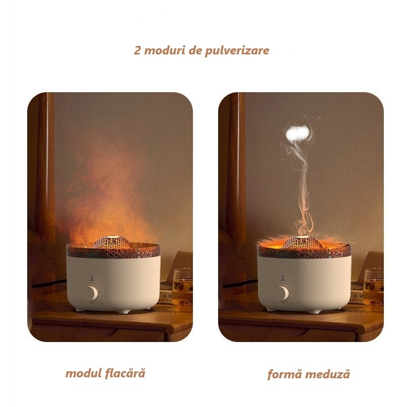 Lumina LED a dispozitivului creeaza un efect de flacara realist datorita particulelor de vapori. Va crea o atmosfera linistitoare, relaxanta si romantica in orice camera.