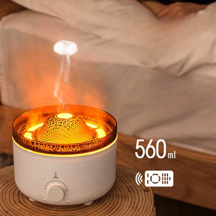 Umidificator de tip vulcan, Flippy, cu aromaterapie, cu telecomanda, 560 ml, model V21A, alb