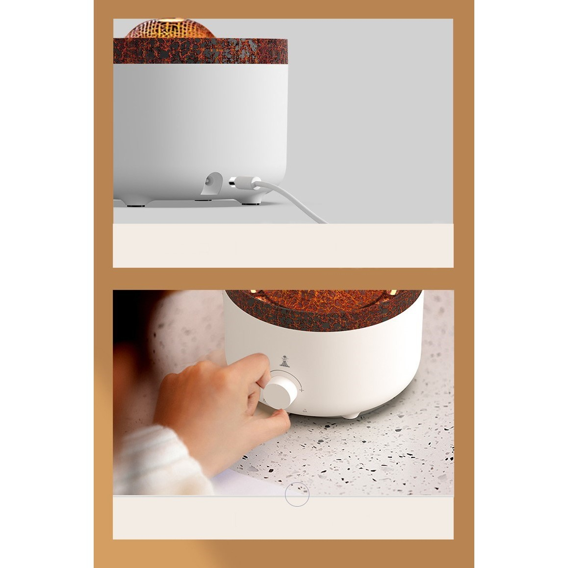 Umidificatorul este un difuzor de aroma elegant si modern. Ofera o iluminare intima cu LED-uri cu consum redus de energie, care confera vaporilor emisi un efect de vulcan.