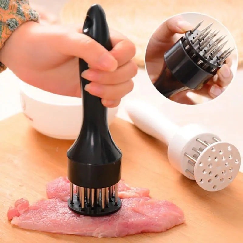 Dispozitiv pentru fragezire carne si pregatire condimentare din otel inoxidabil 304, cu 21 tije de perforare din inox, 20 cm
