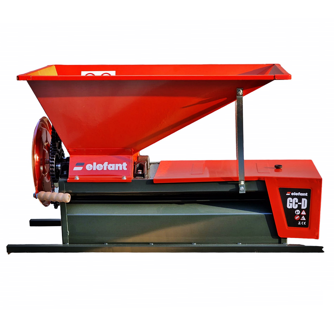 GC-D este un zdrobitor manual de struguri produs de ELEFANT, care vine cu un avantaj deosebit: este si un desciorchinator. Acest instrument versatil ofera pasionatilor de productie de vin sau celor care doresc sa obtina mustul din struguri o solutie completa pentru pregatirea strugurilor pentru procesarea ulterioara. Cu o capacitate de 65 de litri, acest zdrobitor se remarca prin putere si eficienta, fiind capabil sa proceseze o cantitate semnificativa de struguri intr-o singura sesiune. Cuva zdrobitorului GC-D este fabricata din material de inalta calitate, Ote, ceea ce ii confera o durabilitate exceptionala. Materialul Ote este rezistent la substantele chimice prezente in struguri si ofera o rezistenta sporita la presiunea exercitata in timpul procesului de zdrobire. Tamburul de zdrobire este confectionat din aluminiu, un material usor si rezistent, ideal pentru aceasta aplicatie. Cu ajutorul tamburului din aluminiu, acest zdrobitor zdrobeste strugurii cu precizie, extragand mustul delicios si evitand prea multa presiune asupra semintelor, ceea ce ar putea afecta gustul mustului final. Un avantaj deosebit al zdrobitorului GC-D este functia de desciorchinare. Acest instrument este dotat cu un sistem special care permite indepartarea coditelor de pe struguri inainte de procesul de zdrobire. Aceasta este o caracteristica esentiala pentru productia de vin, deoarece elimina efortul si timpul necesar pentru desciorchinarea manuala a strugurilor, facand intregul proces mult mai eficient. Transmisia pe lant este alta caracteristica importanta a zdrobitorului GC-D. Acest sistem de transmisie asigura o functionare eficienta si consistenta, transmitand puterea de la maner la tamburul de zdrobire si desciorchinare intr-un mod fluid si fara probleme. De asemenea, manerul ergonomic si mecanismul de zdrobire usor de operat fac din acest instrument un partener de lucru comod si eficient. Puteti controla cu usurinta procesul de zdrobire si desciorchinare, ajustand presiunea si ritmul in functie de nevoile dvs. specifice. In concluzie, zdrobitorul manual de struguri GC-D de la ELEFANT este o alegere excelenta pentru cei pasionati de productia de vin sau pentru cei care doresc sa obtina mustul proaspat si delicios din struguri cu un efort minim. Cu o capacitate generoasa de 65 de litri, cuva din Ote si tamburul din aluminiu, acest zdrobitor este construit pentru durabilitate si eficienta. Functia de desciorchinare adauga un avantaj semnificativ, economisind timp si efort. Transmisia pe lant si manerul ergonomic completeaza pachetul, oferindu-va un control precis si o experienta de lucru placuta. Cu acest zdrobitor, veti putea sa pregatiti strugurii pentru productia de vin sau pentru alte scopuri cu usurinta si eficienta.